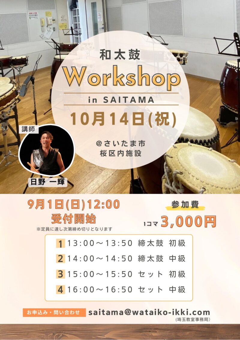 久々に埼玉でプチワークショップを開催します。コースは、締太鼓の初級と中級、太鼓2台セットの初級と中級の4つ用意しました。初級は比較的優しいので、楽譜が少し読める程度でも十分叩ける内容となってます。中級は少し難易度が高いのですが、懇切丁寧に... -