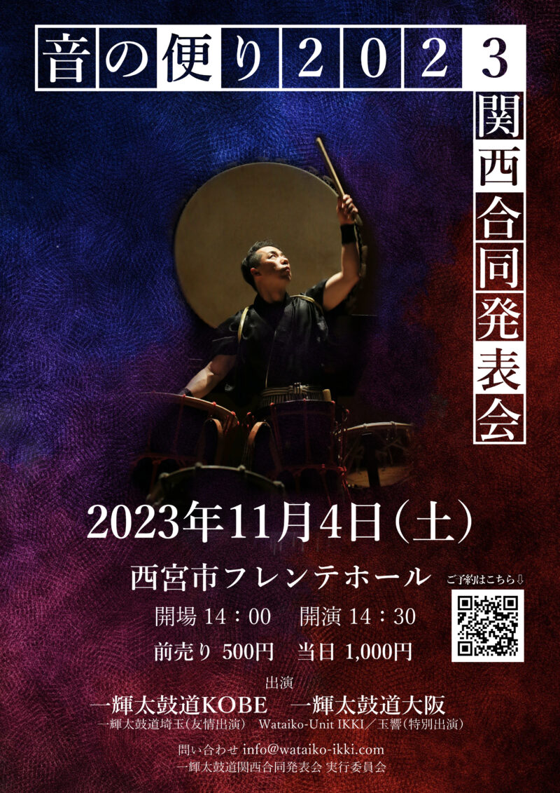 日程:2023年11月4日(土)時間:開場14:00 開演14:30会場:西宮市フレンテホールフレンテ西宮5F ※JR「西宮駅」南出口より徒歩1分料金:前売500円 当日1,000円(未就学児無料)出演:一輝太鼓道KOBE / 一輝太鼓道大阪一輝太鼓道埼玉(友情出演) Wataiko-Unit I...