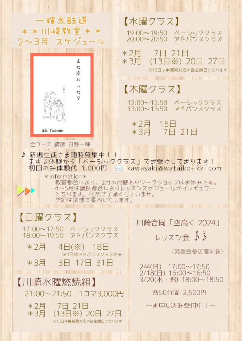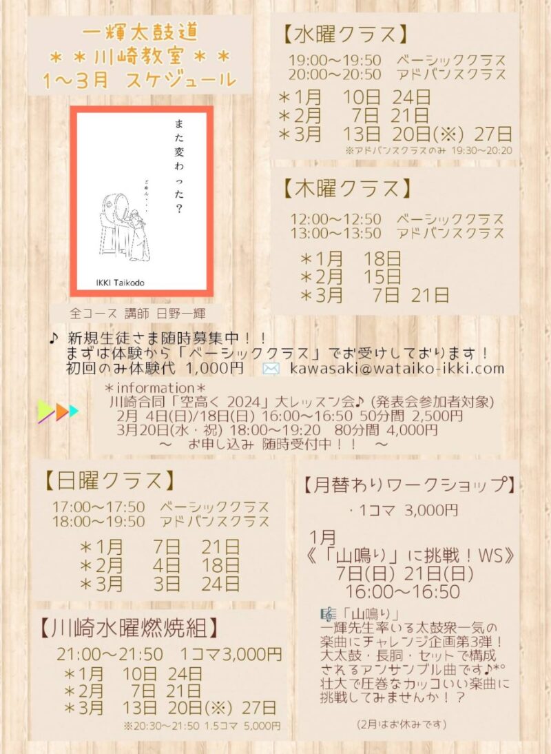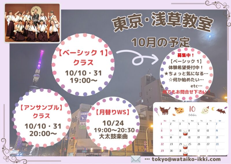 お問い合わせ 一輝太鼓道川崎教室事務局 担当:船山 kawasaki@wataiko-ikki.com -