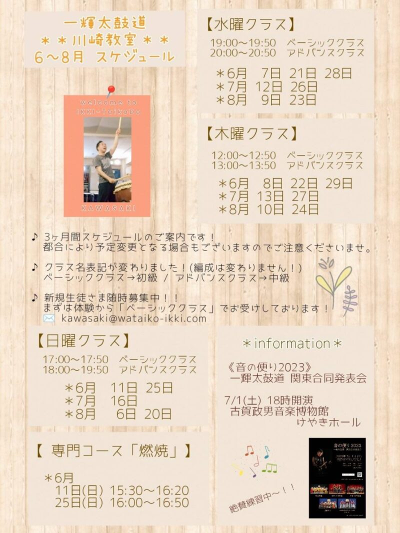 川崎教室6〜8月の予定