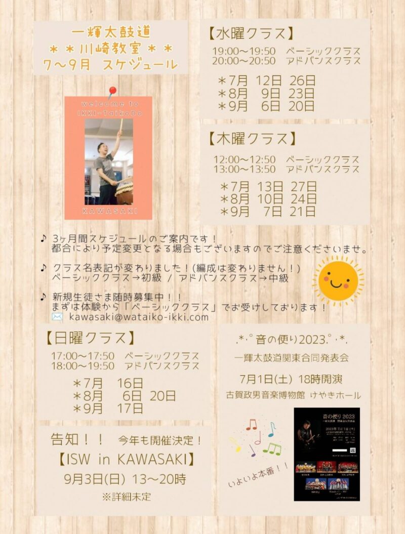 川崎教室7〜9月の予定