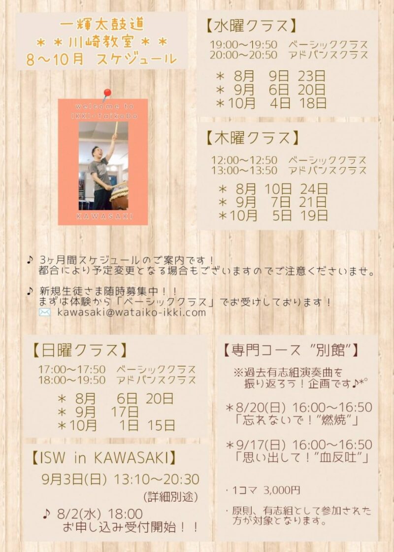川崎教室8~10月の予定