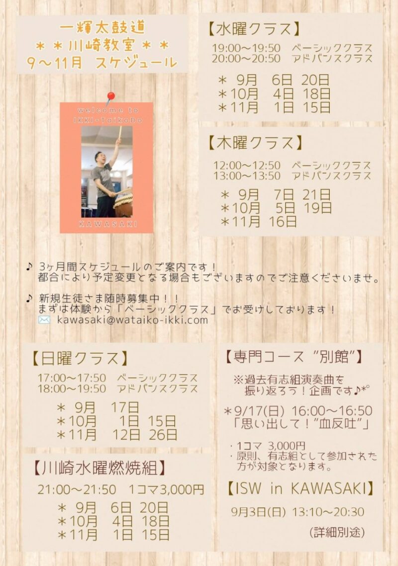 川崎教室9〜11月の予定