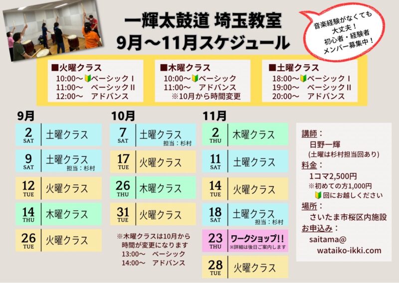 埼玉教室9〜11月の予定