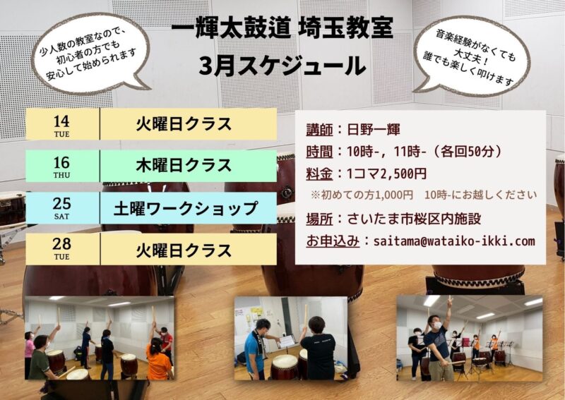 お問い合わせ 一輝太鼓道埼玉教室事務局 担当:杉村 saitama@wataiko-ikki.com -