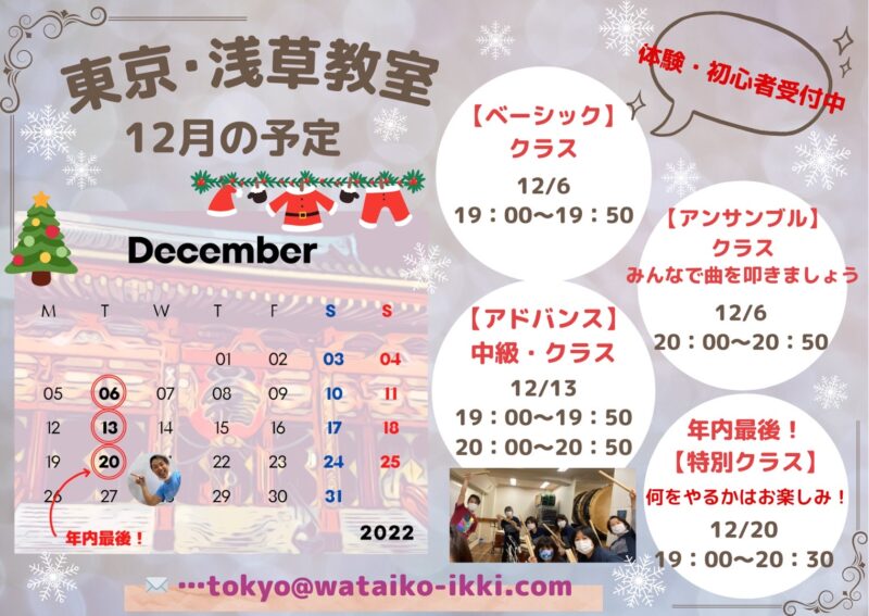 お問い合わせ 一輝太鼓道川崎教室事務局 担当:船山 kawasaki@wataiko-ikki.com -
