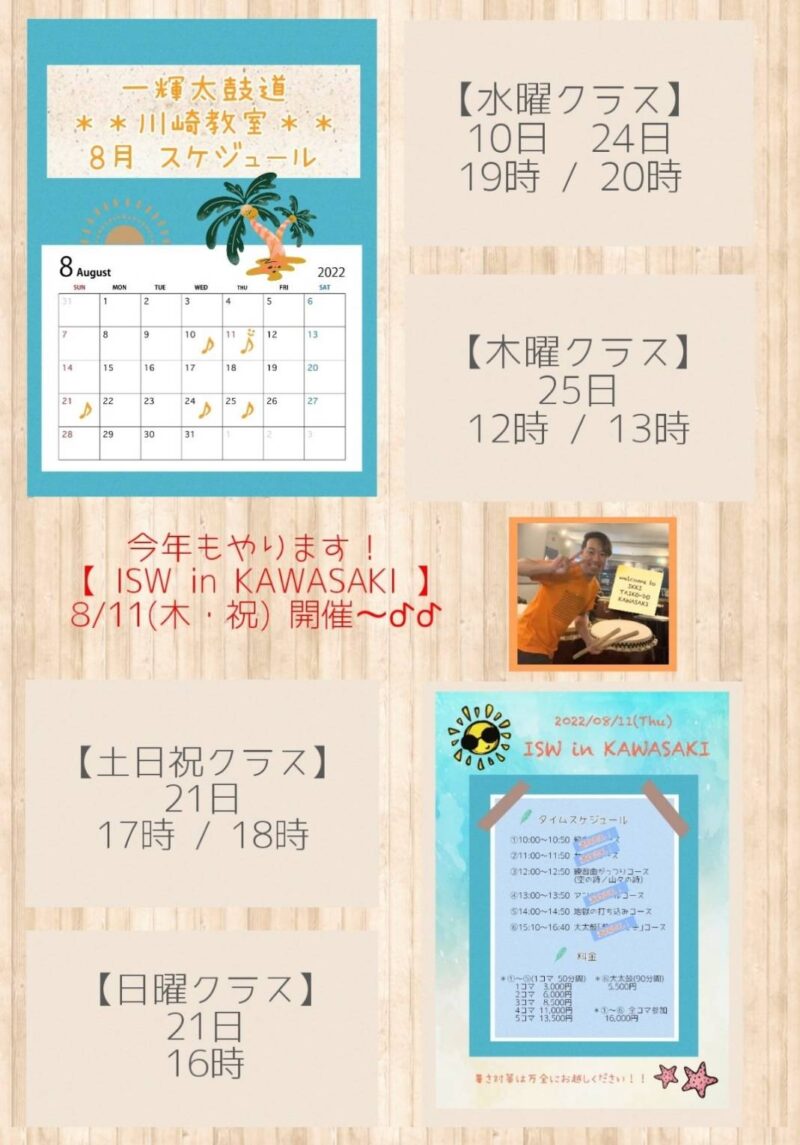 川崎教室8月の予定