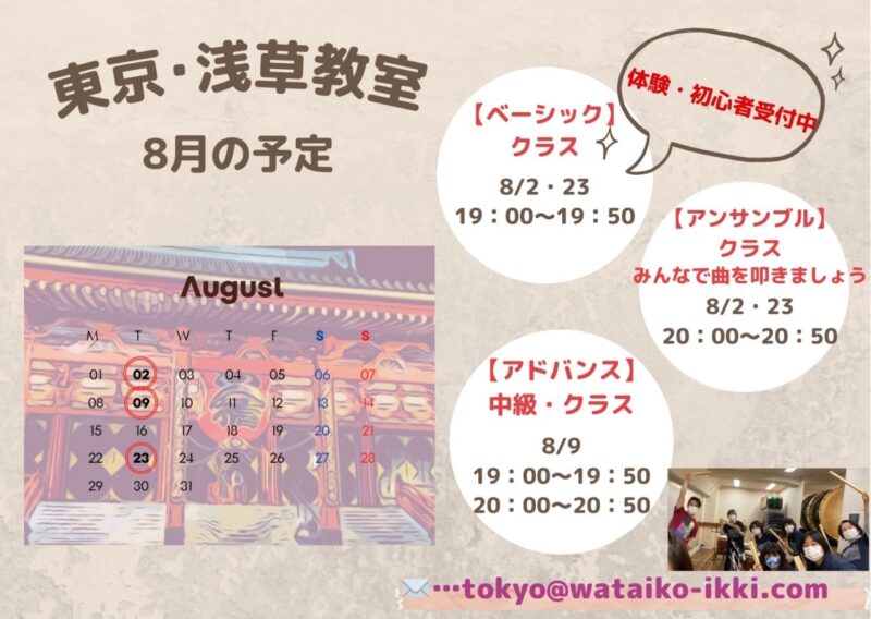 東京・浅草教室8月の予定