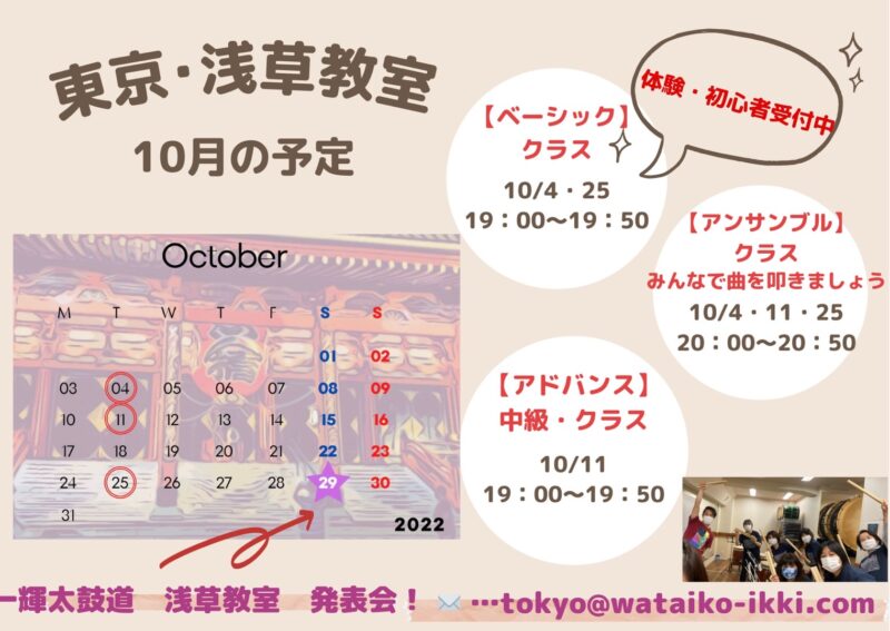 東京・浅草教室10月の予定