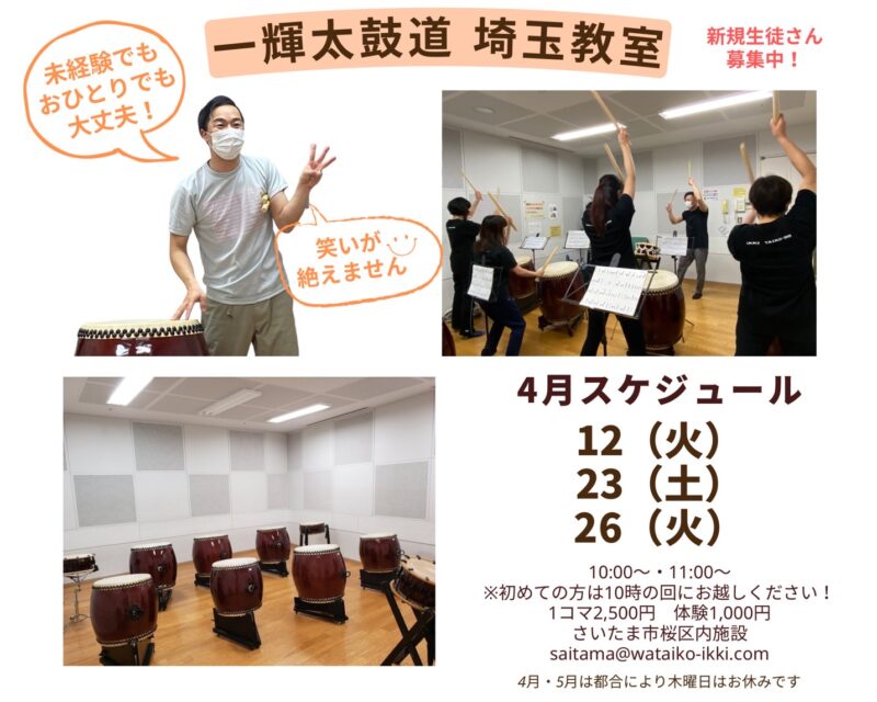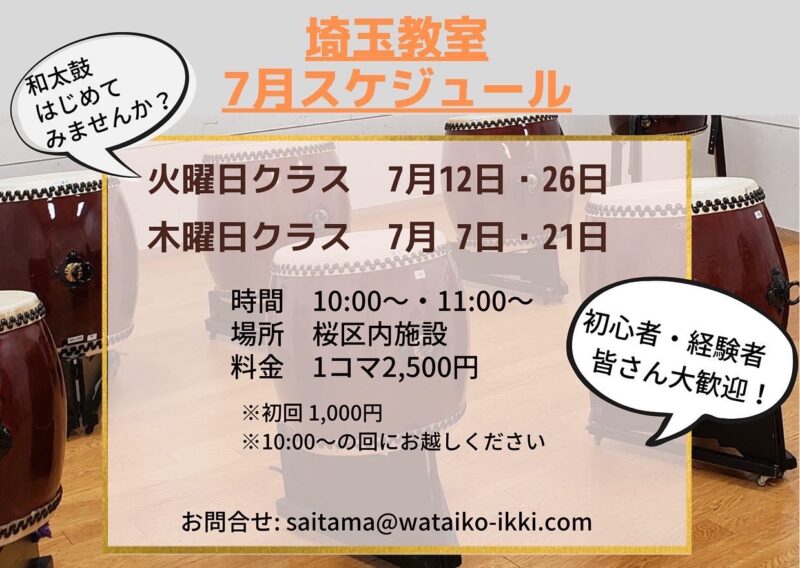 お問い合わせ 一輝太鼓道埼玉教室事務局 担当:杉村 saitama@wataiko-ikki.com -