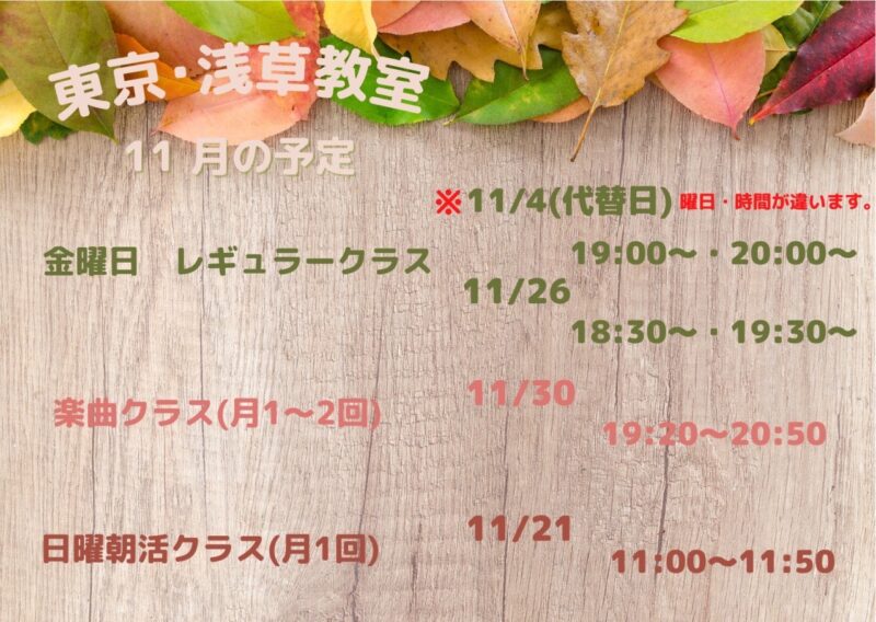 東京・浅草教室11月の予定