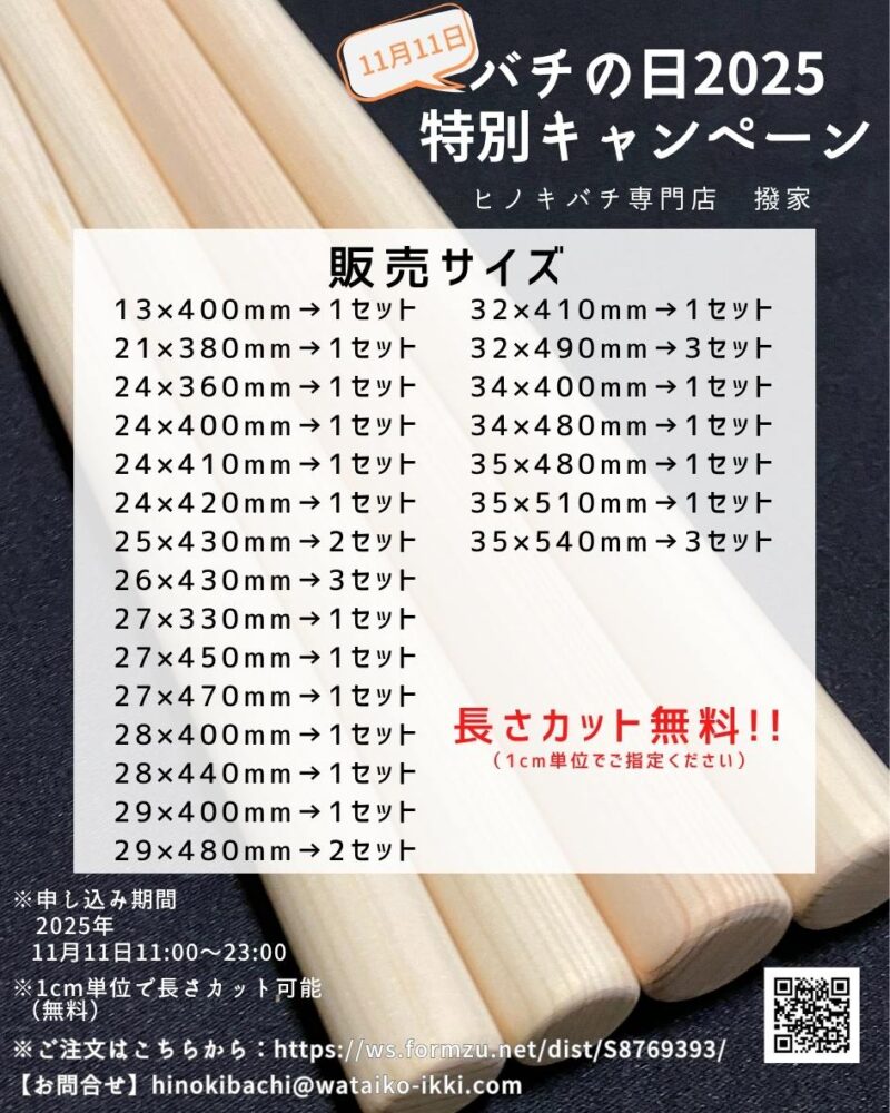 | 形状 | ストレートのみとなります(テーパー等の特殊バチは取り扱っておりません) |